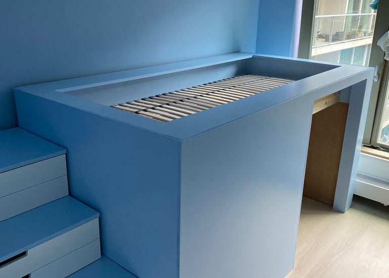 Onze vriend Jonas heeft na dit schilderij een prachtig bed gekregen, hij (4 jaar) was er heel blij mee.